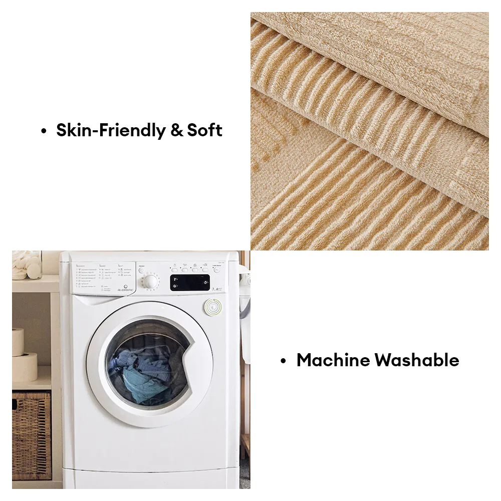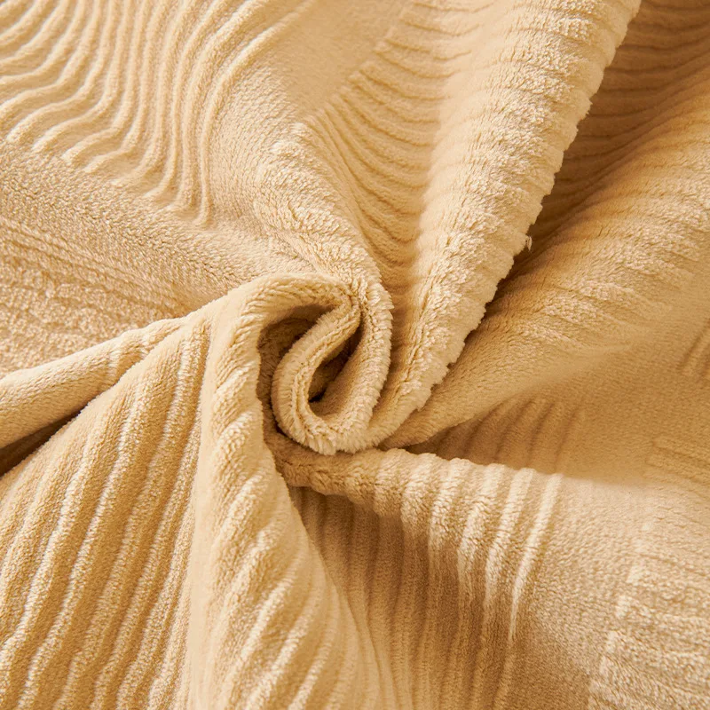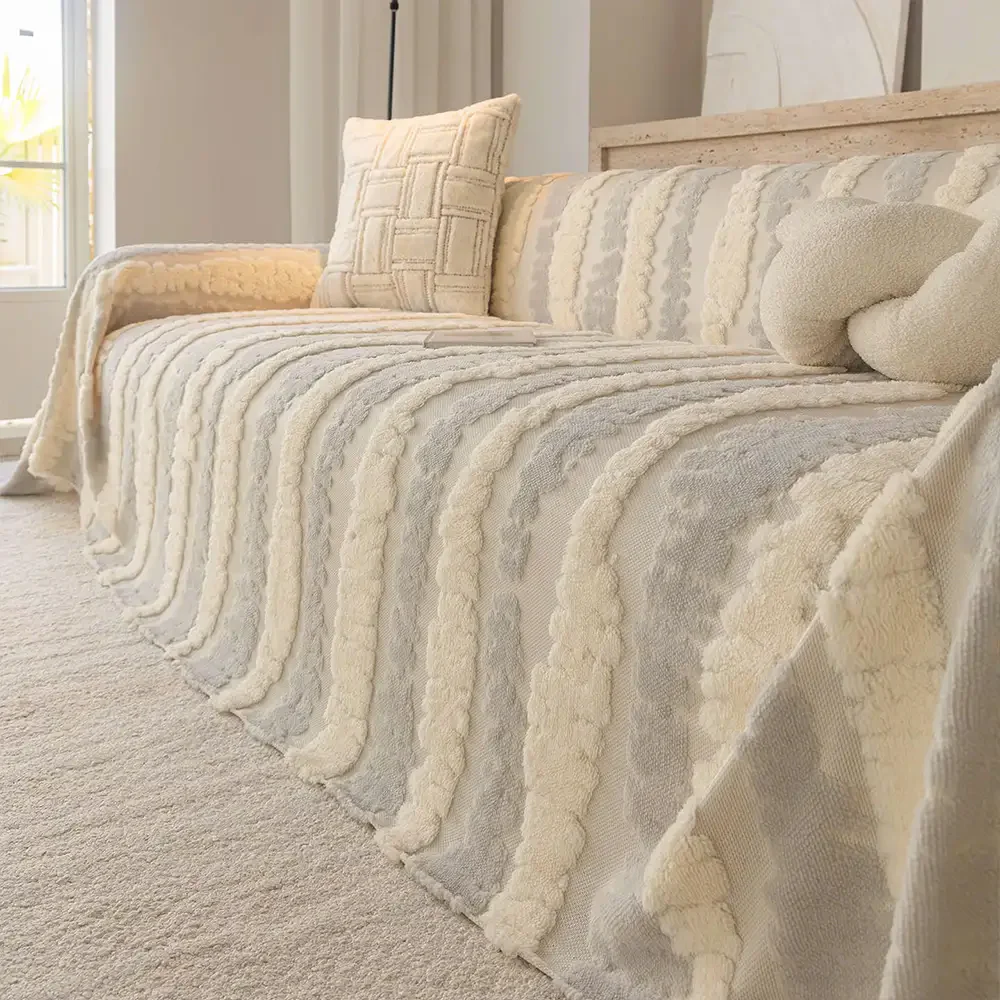 Modern Cream Vertical Stripes Fleece Couch Cover for All Seasons