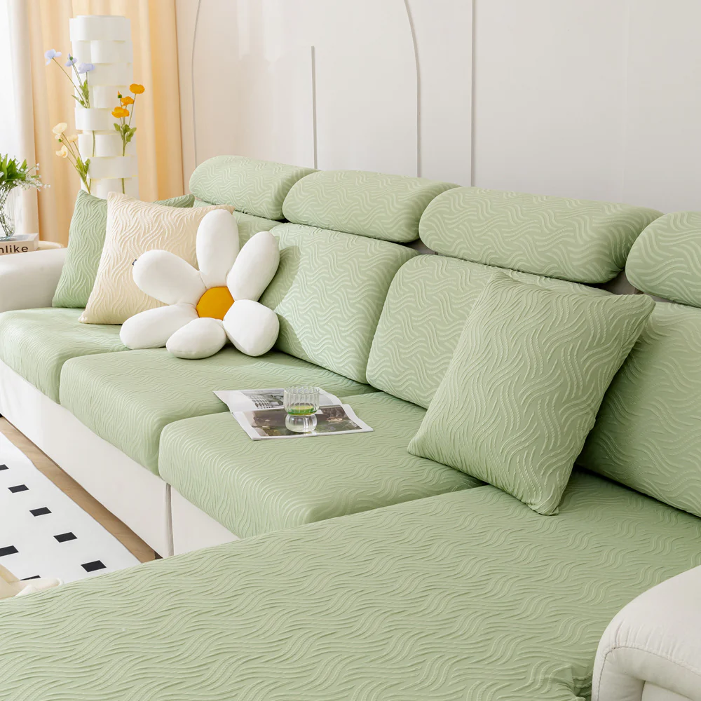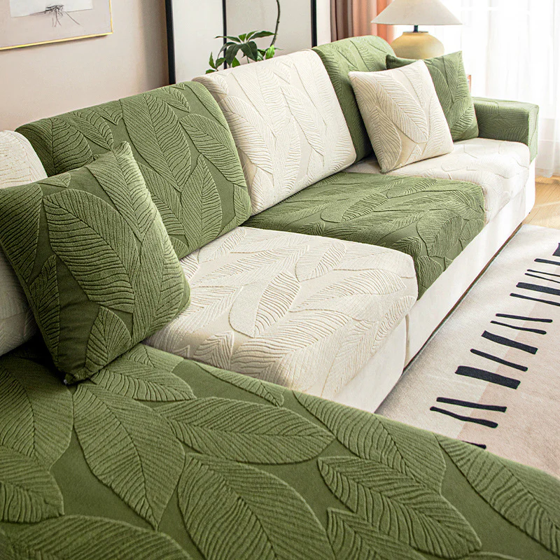 Modern Leaf Jacquard Water-Repellent Anti-Scratch Stretch Full Wrap Couch Cover