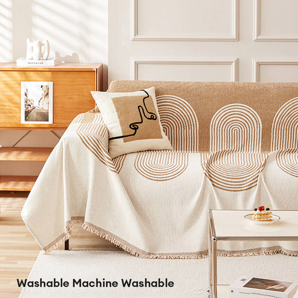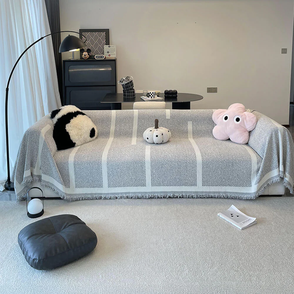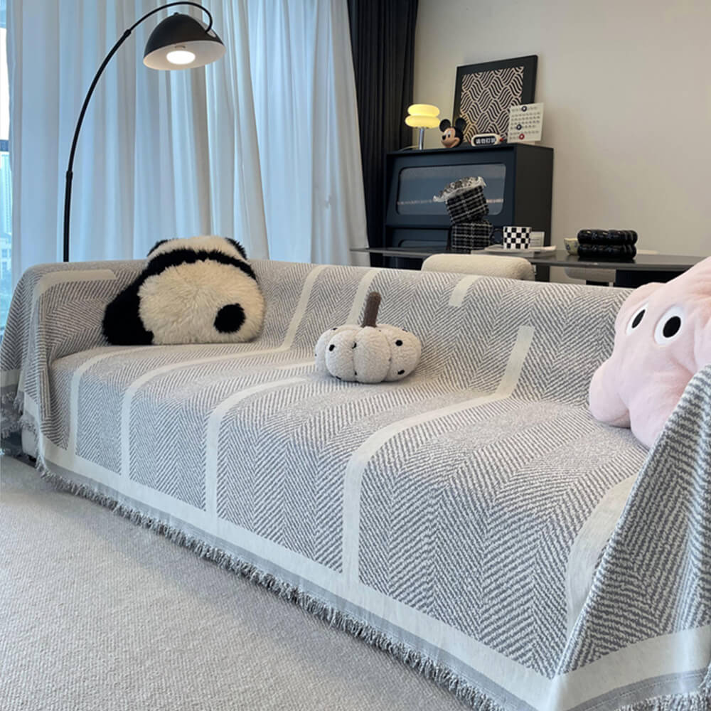 Geometric Fringe Double-Sided Chenille Non-Slip Throw Couch Cover