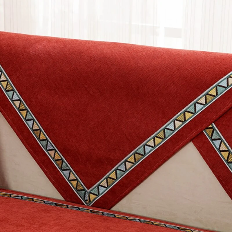 Geometric Decor Solid Color Chenille Non-Slip Comfort Couch Cover