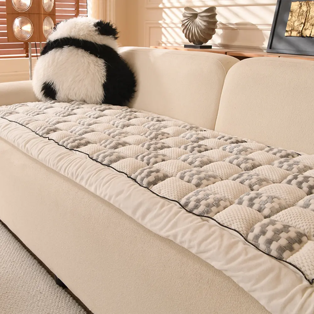 Houndstooth Plush Mat Furniture Protection Anti-Slip Couch Cover