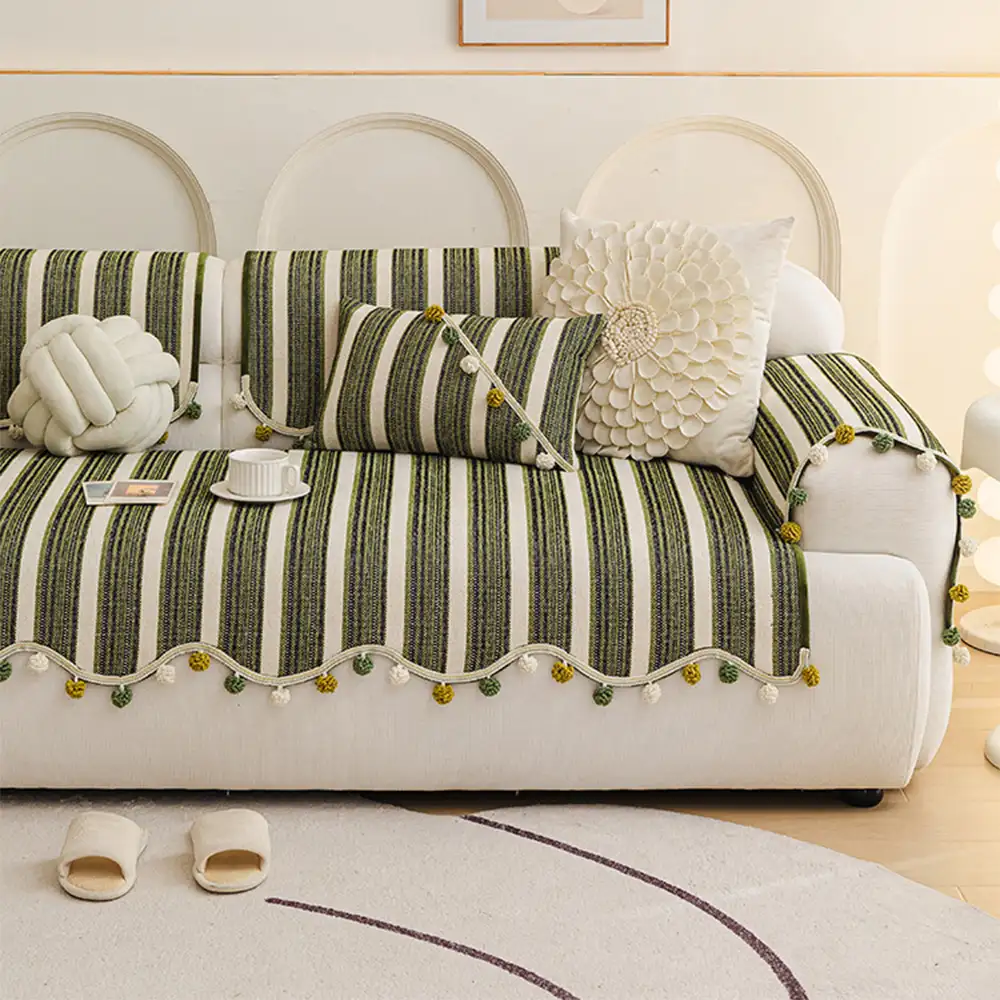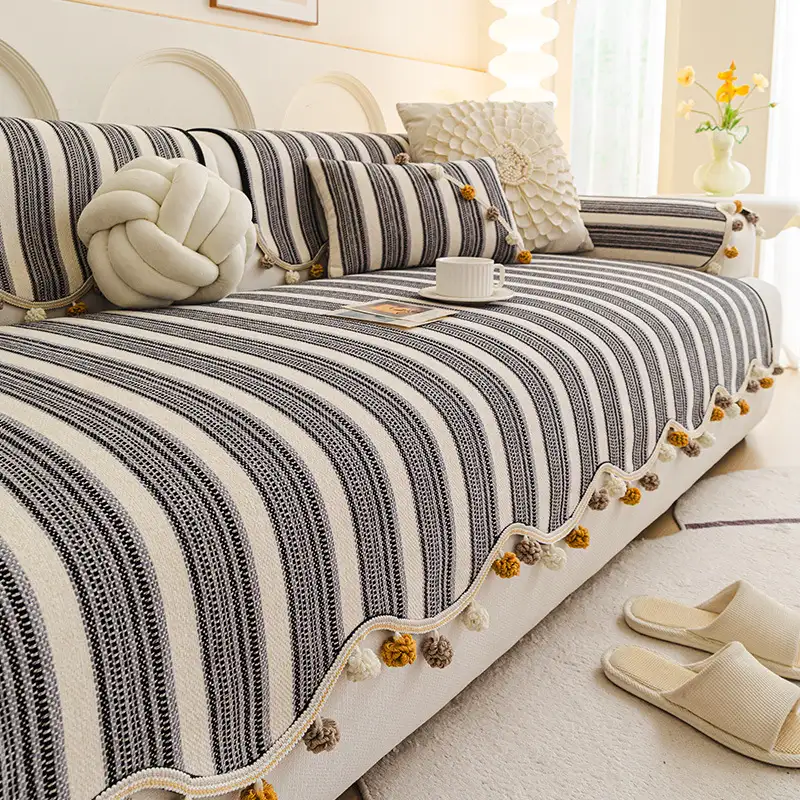 Hand-woven Cotton Linen Non-slip Couch Cover for All Seasons