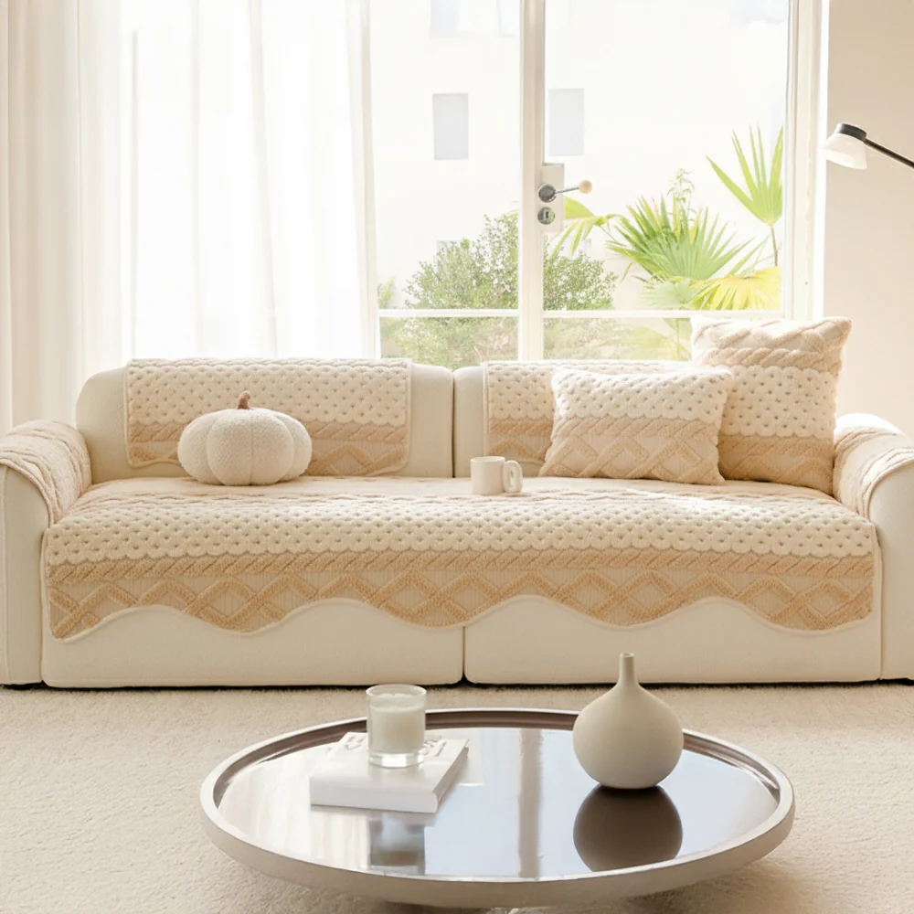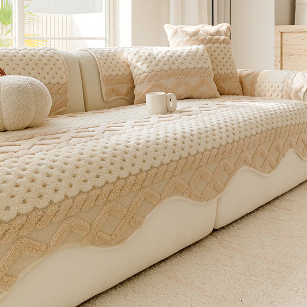 Cozy Plush Solid Colour Non-slip Couch Cover
