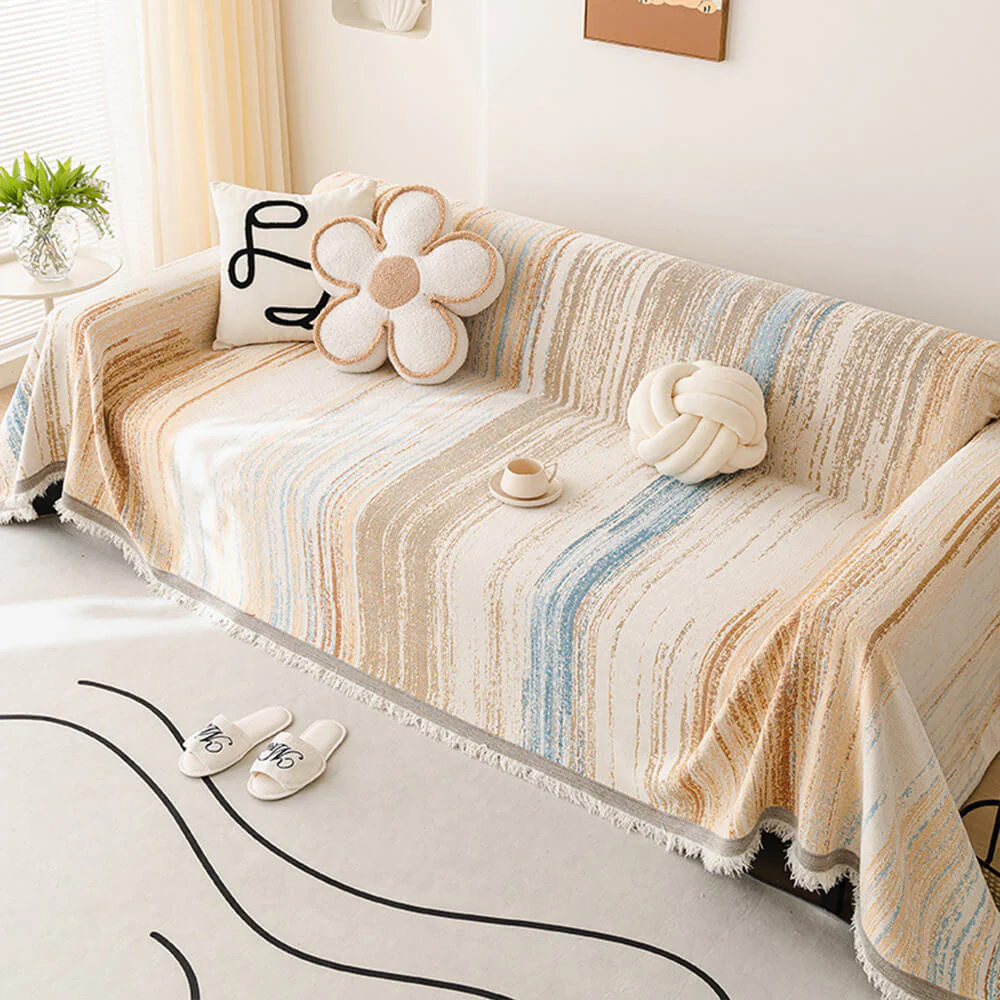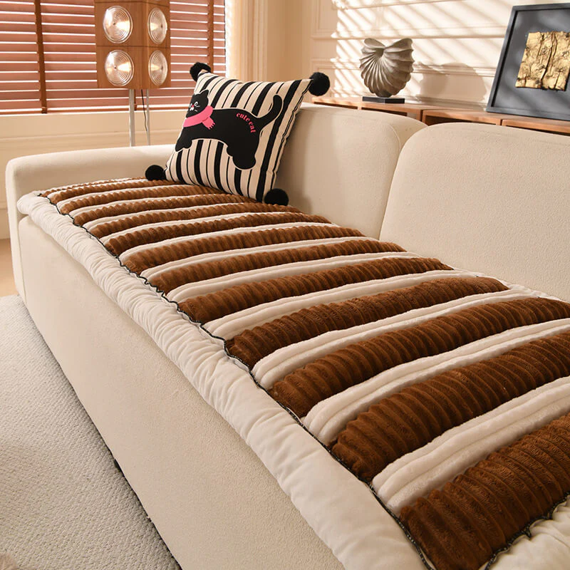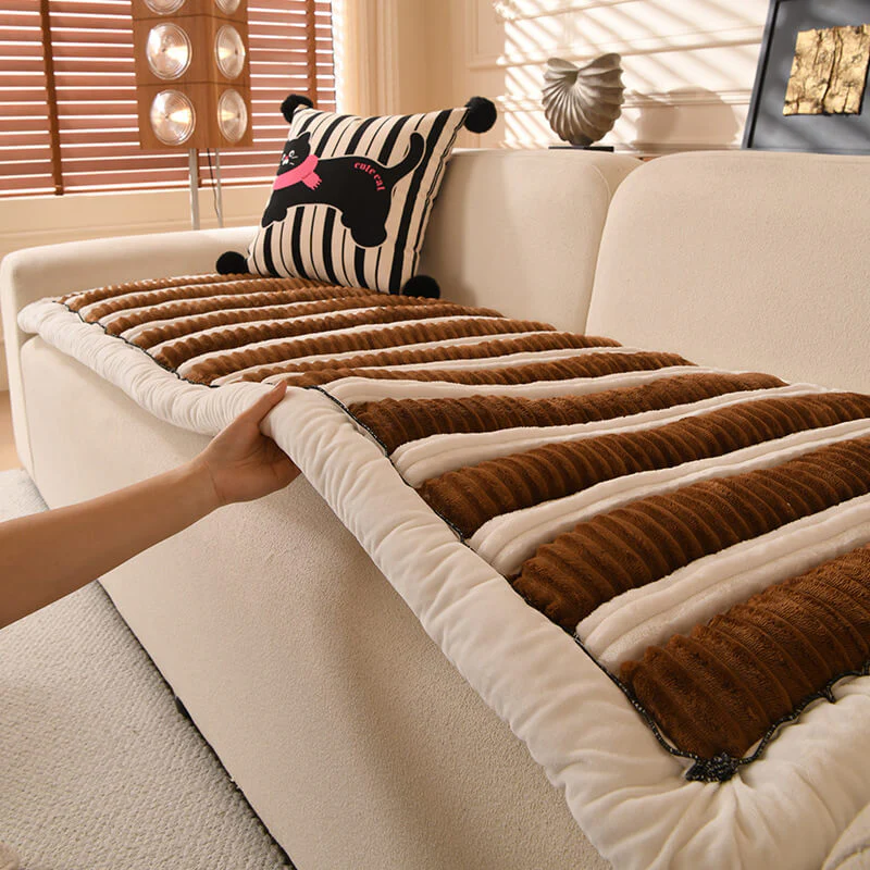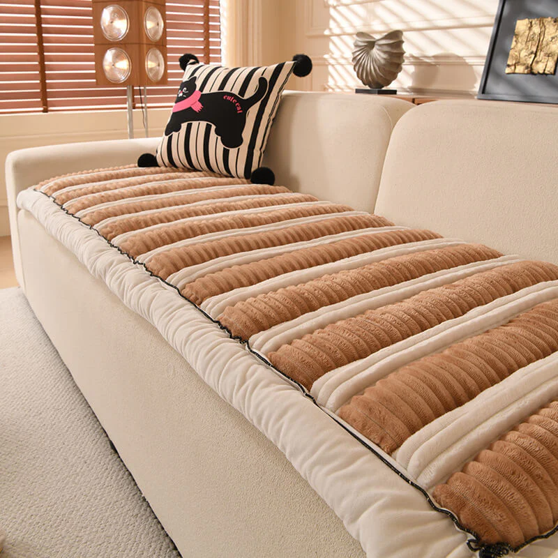 Cozy Chenille Striped Plush Sofa Protector Pet Mat Non-slip Couch Cover