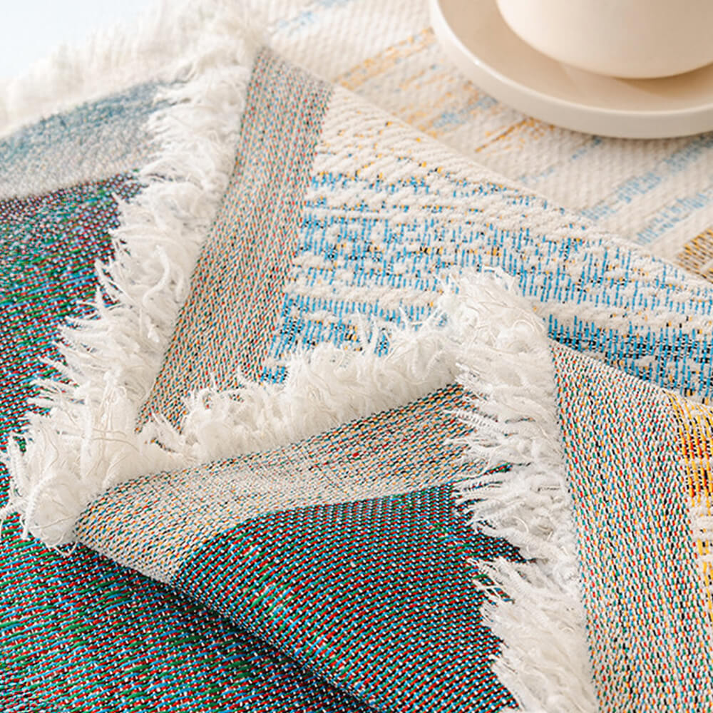 Color Block Checkerboard Fringe Trim Sofa Blanket Couch Cover