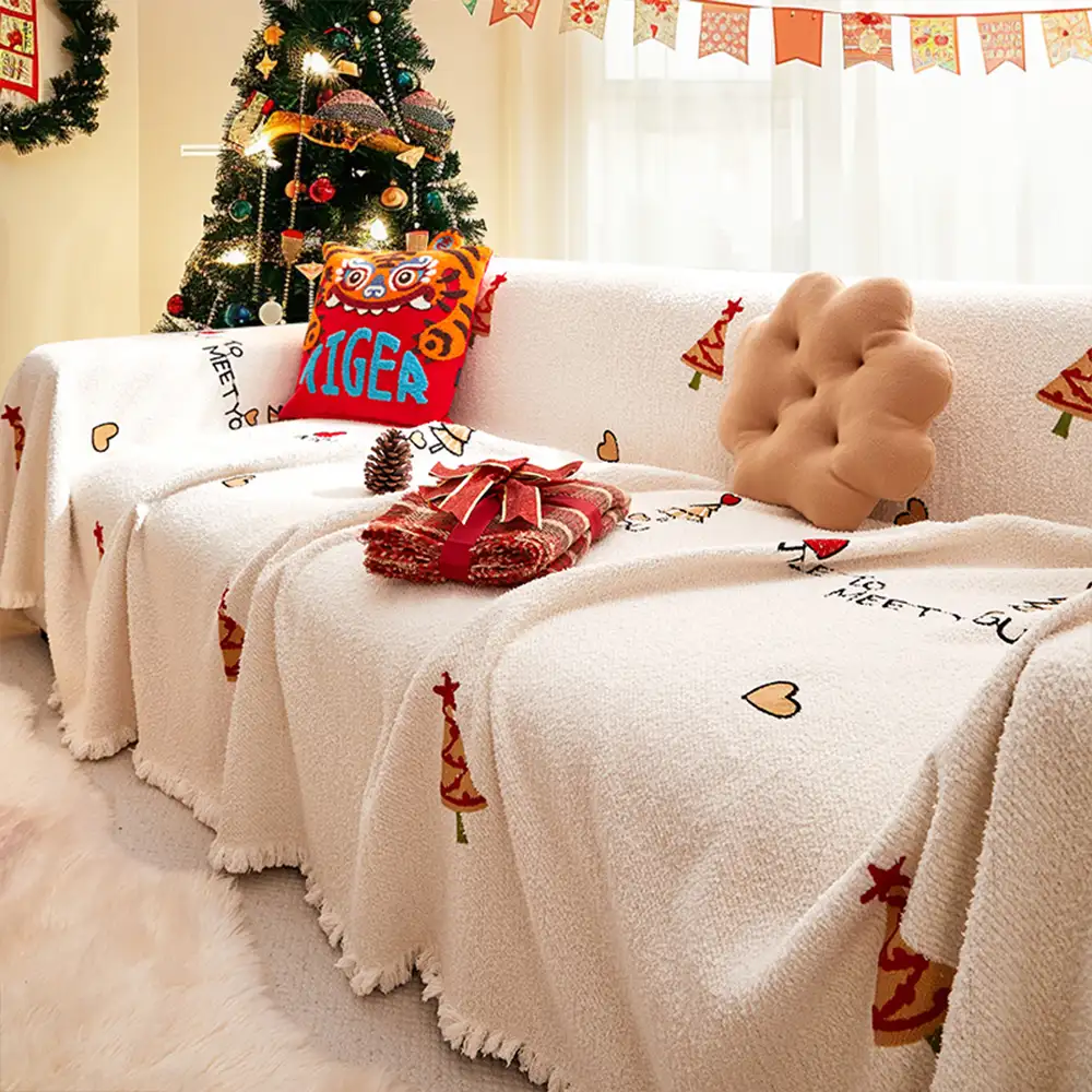 Christmas Decoration Chenille Wear-Resistant Sofa Blanket Couch Cover