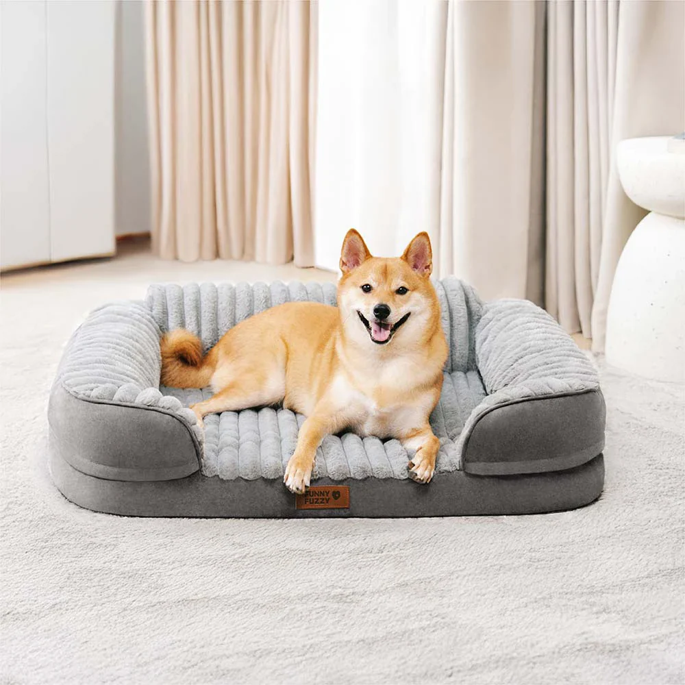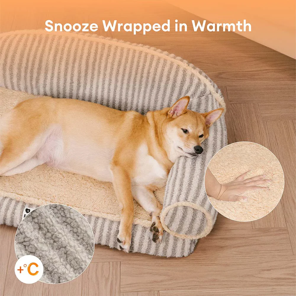Fluffy Striped Orthopedic Bolster Dog Bed - Luxe Comfort