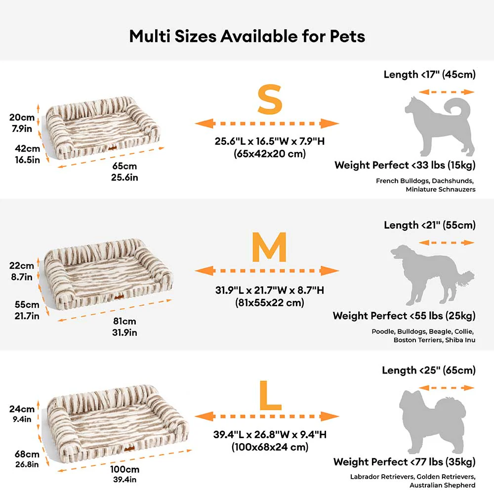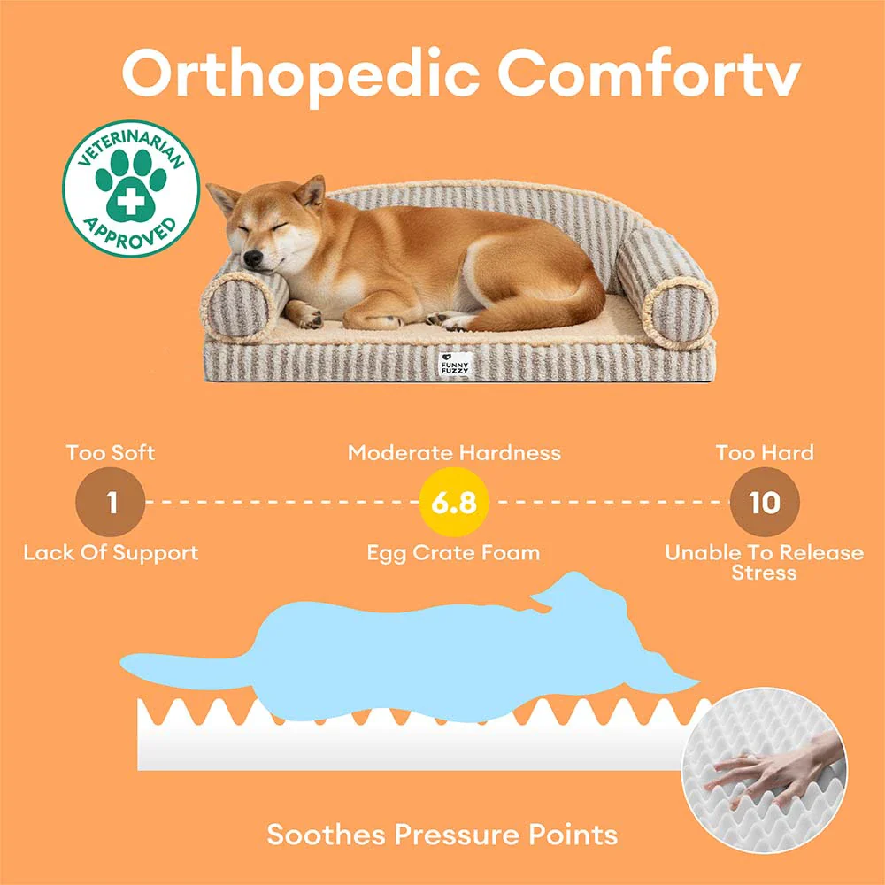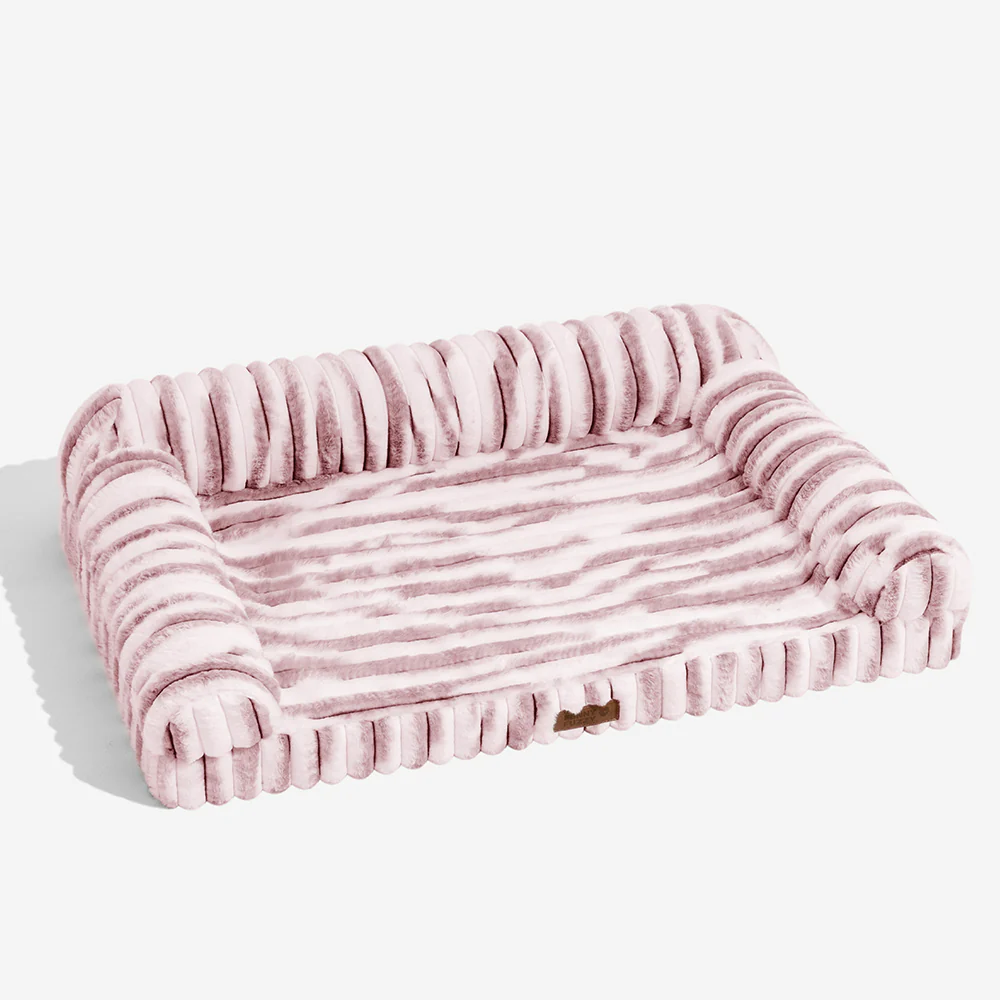 Fluffy Stripe Washable Orthopedic Dog & Cat Sofa Bed - Latte Nooki