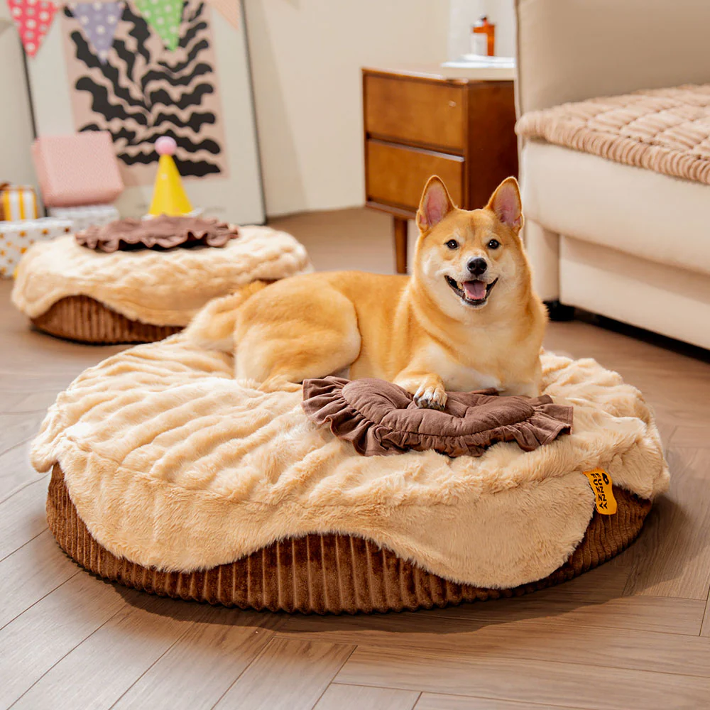 Fluffy Cake-Shaped Detachable Plush Orthopedic Pet Bed C DreamBake
