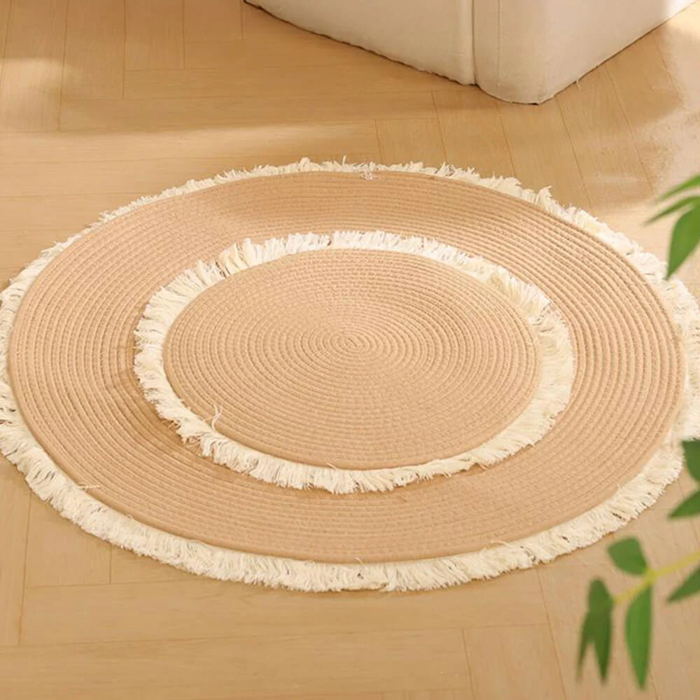 Nordic Handwoven Durable Cat Scratch Mat Rug with Fringe