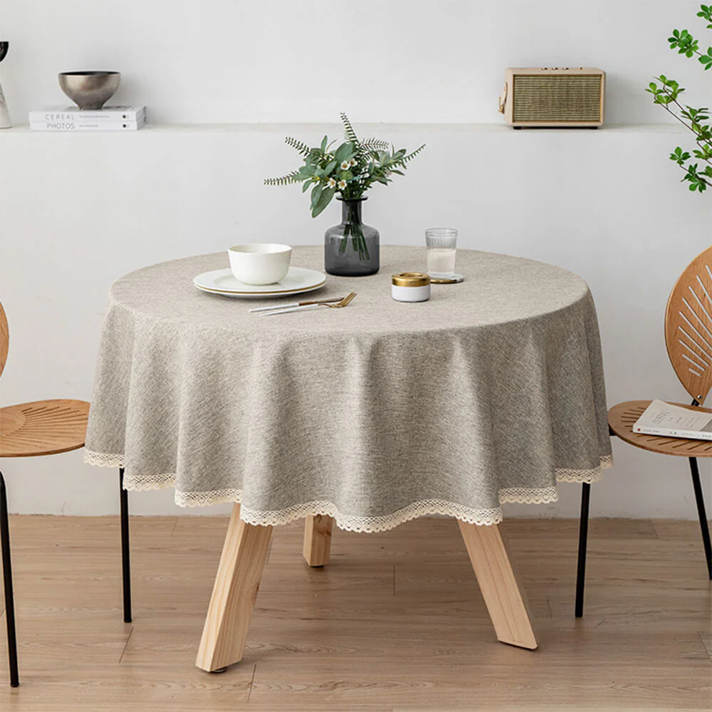 Minimalist Linen Waterproof and Oil-Resistant Easy-Care Round Tablecloth
