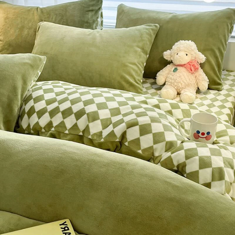 Warm Plush Plaid Skin-Friendly Soft Bed Sheet Set