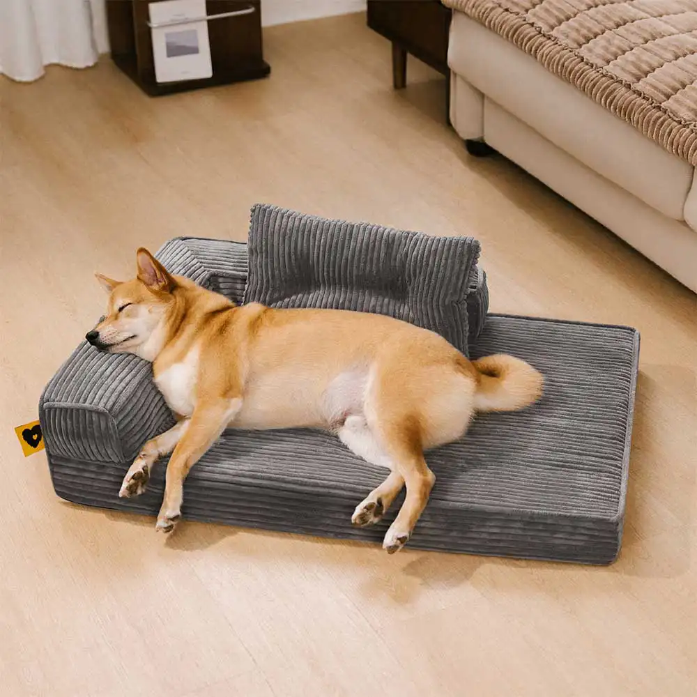 Corduroy Anti-Scratch Removable Orthopedic Dog Bed with Pillow - ComfySofa