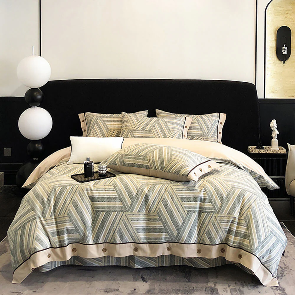 Colorful Geometric Ultra-Soft Brushed Cotton Button Bed Sheet Set