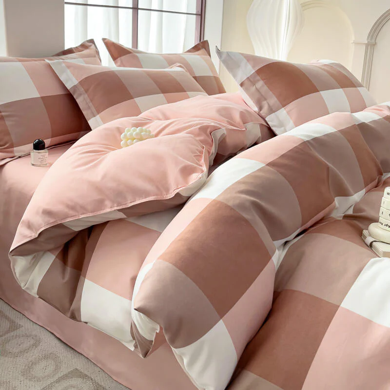 Classic Plaid Color Block Stylish Breathable Bed Sheet Set