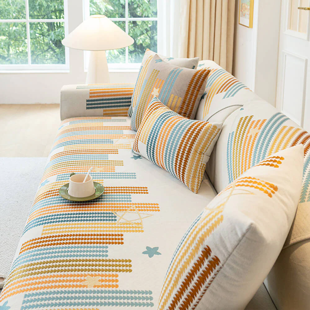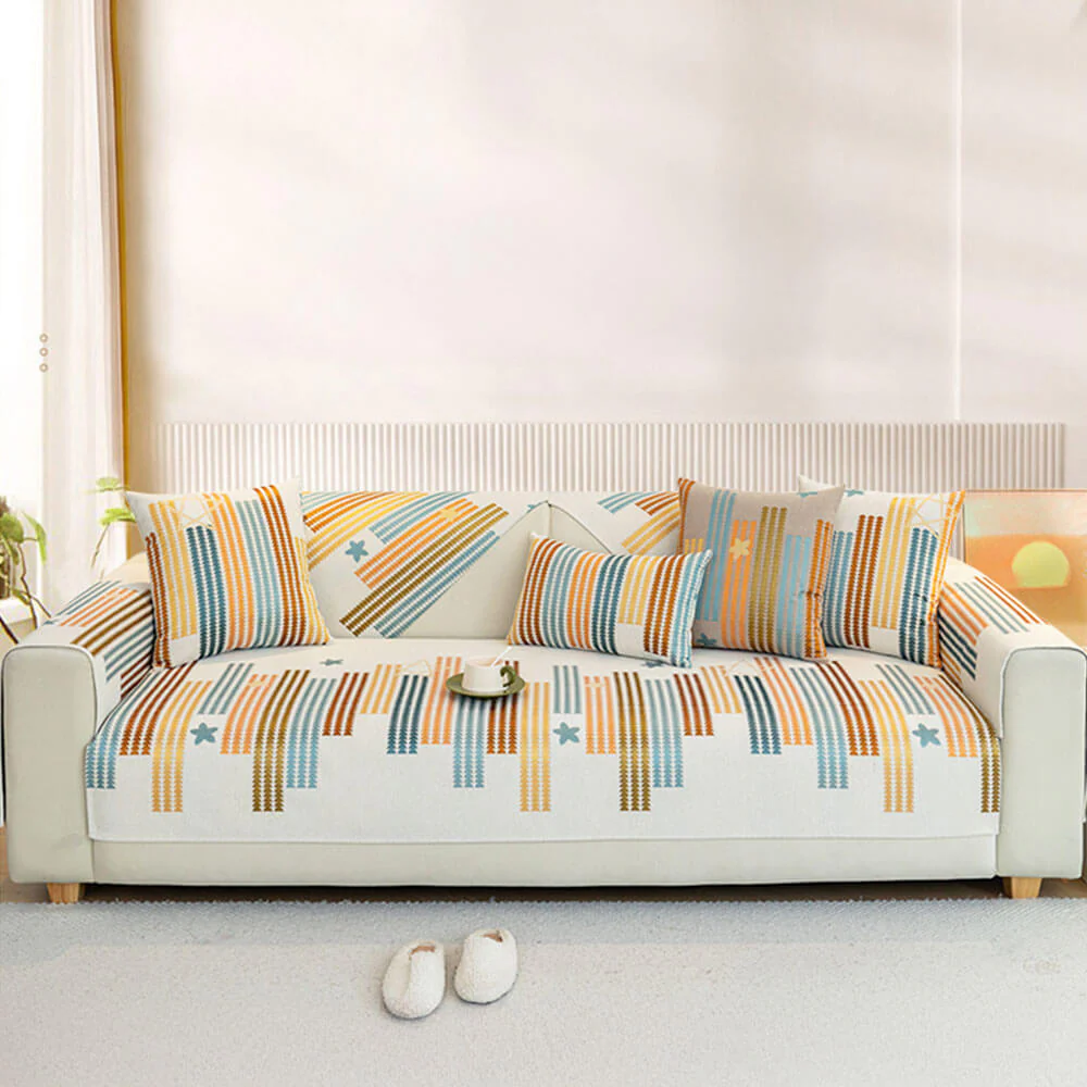 Classic Geometric Pattern Chenille Throw Couch Cover