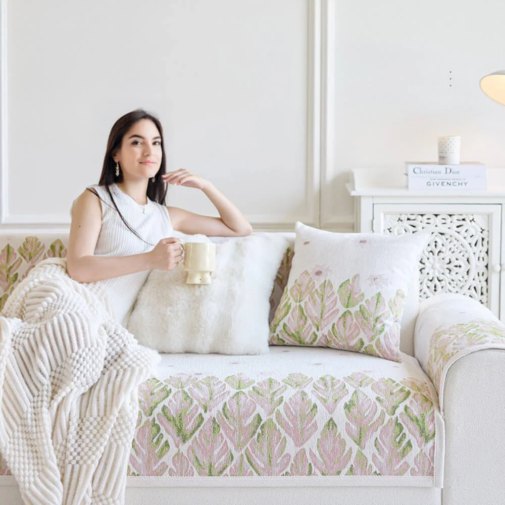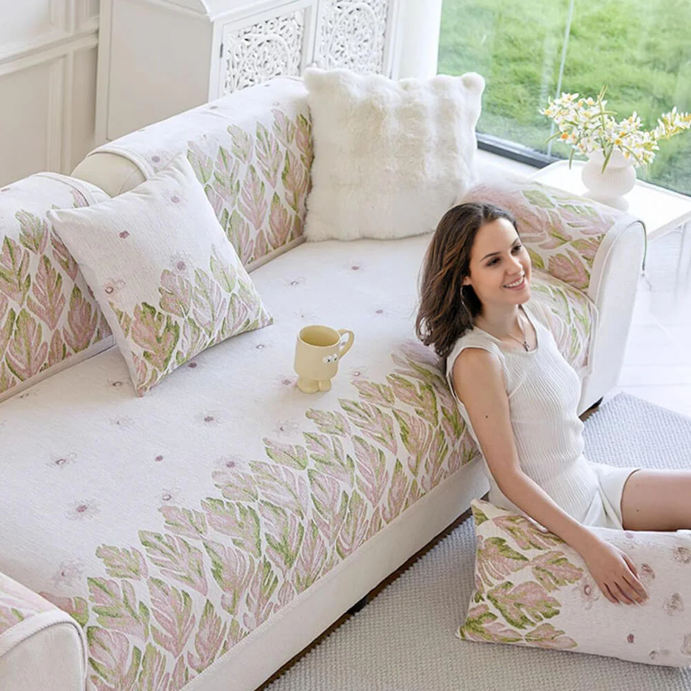 Chenille Romantic Botanical Design Comfortable Couch Cover