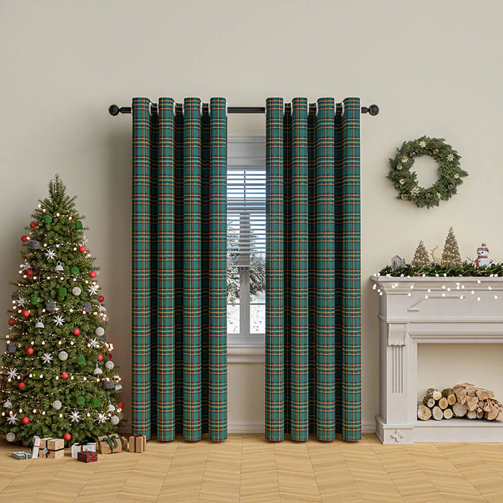 Classic Plaid Christmas Decorative Semi-Blackout Curtains