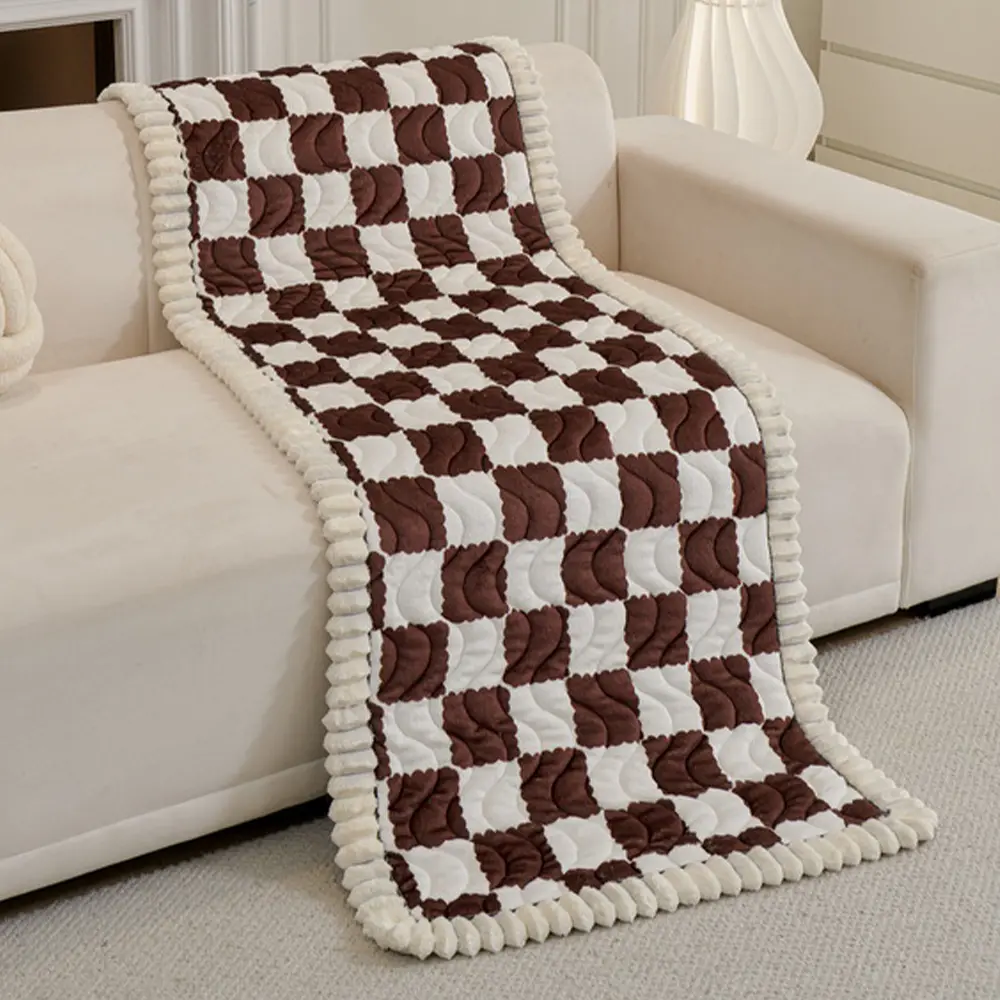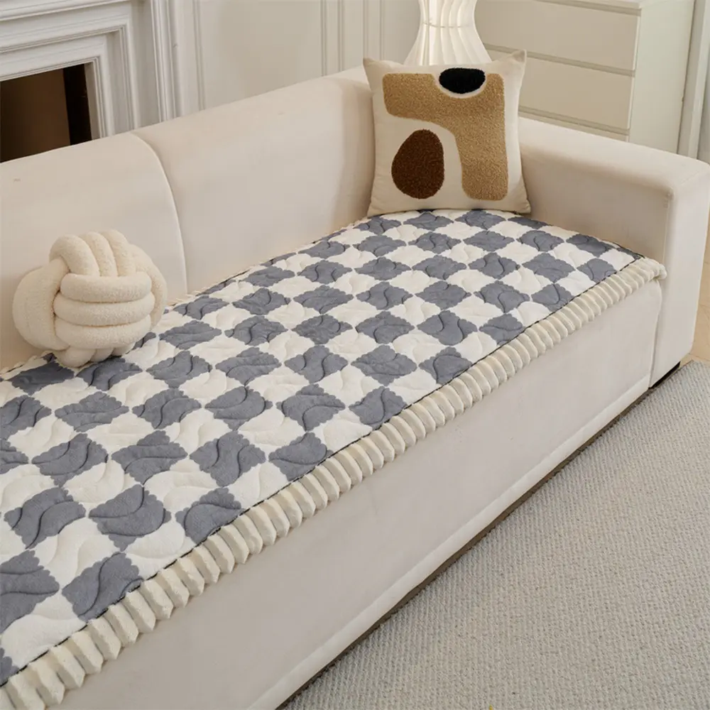 Checkered Velvet Sofa Pad Anti-Slip Quilted Couch Cover