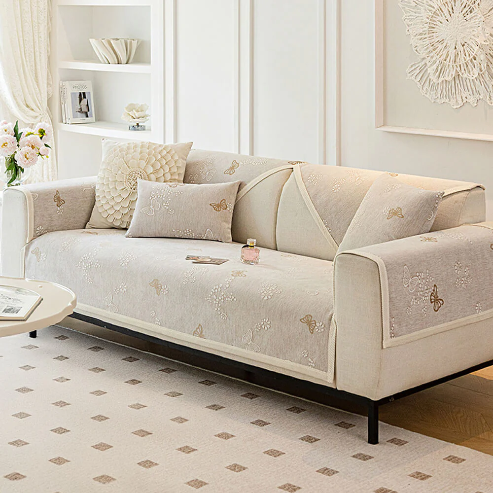 Chenille Anti-Slip Butterfly Pattern Morandi Color Couch Cover