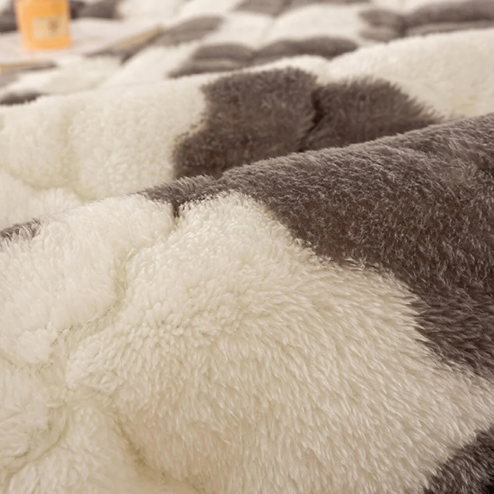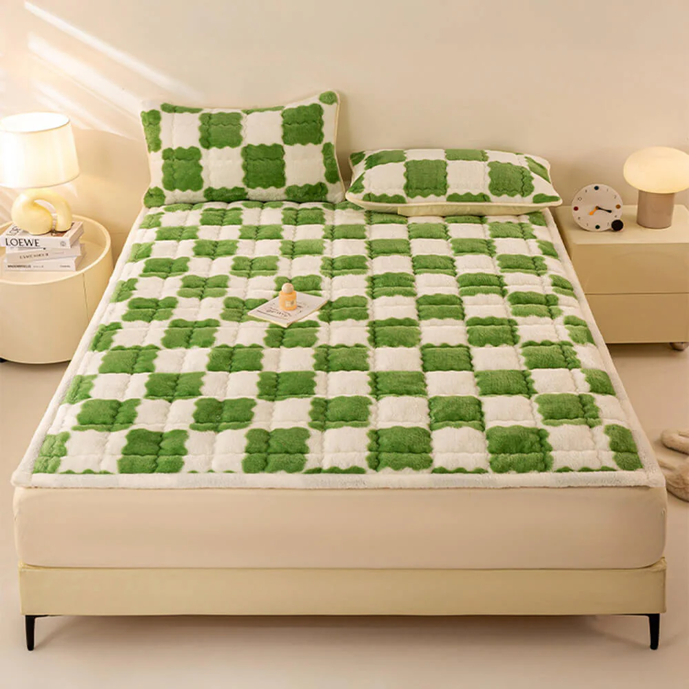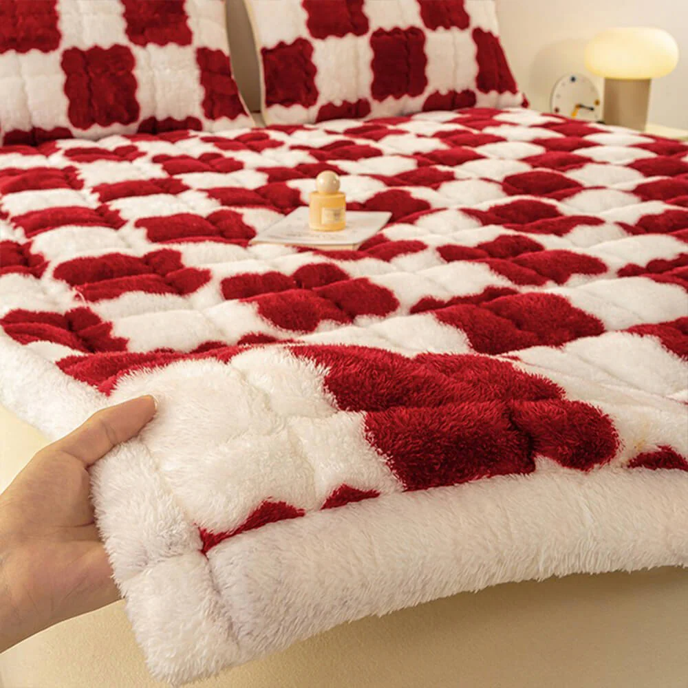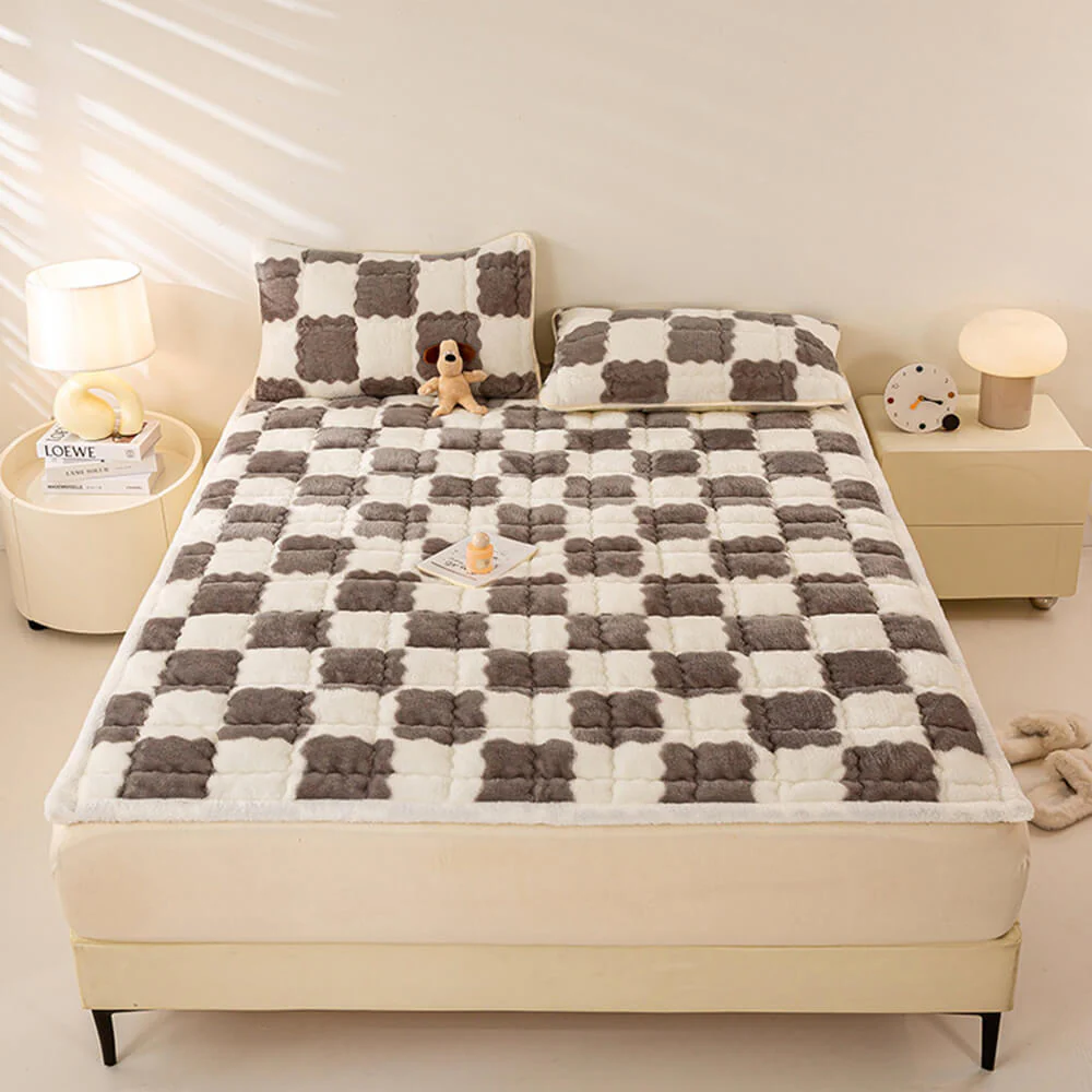 Warm Checkerboard Plush Mattress Topper and Pillowcase