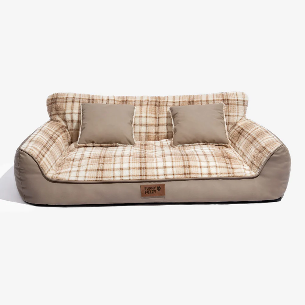 Vintage Plaid Plush Orthopedic Dog Sofa Bed with Pillows - CozyLuxe