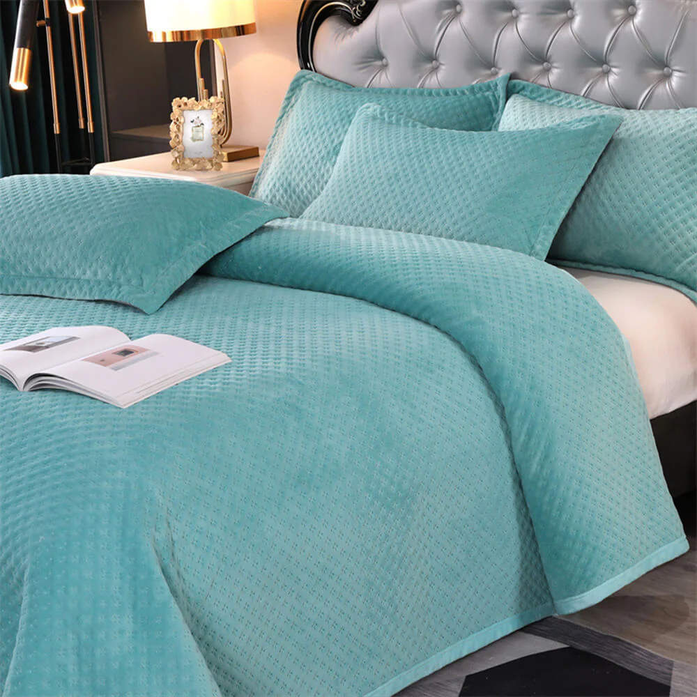 Waffle Milk Fleece Warm Quilted Bedspread Set