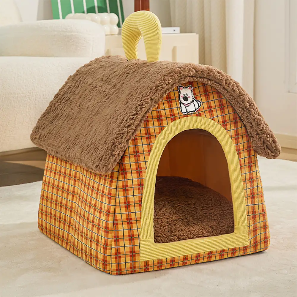 Vintage Plaid Cozy Plush Warm Foldable Cat Cave Dog House