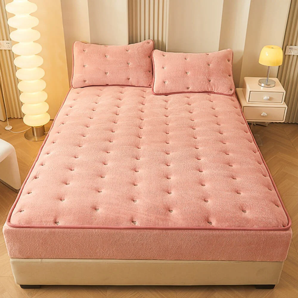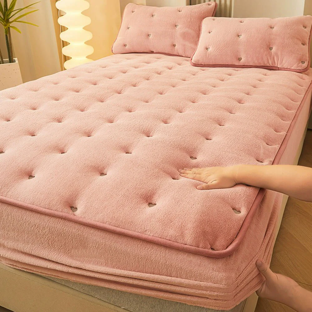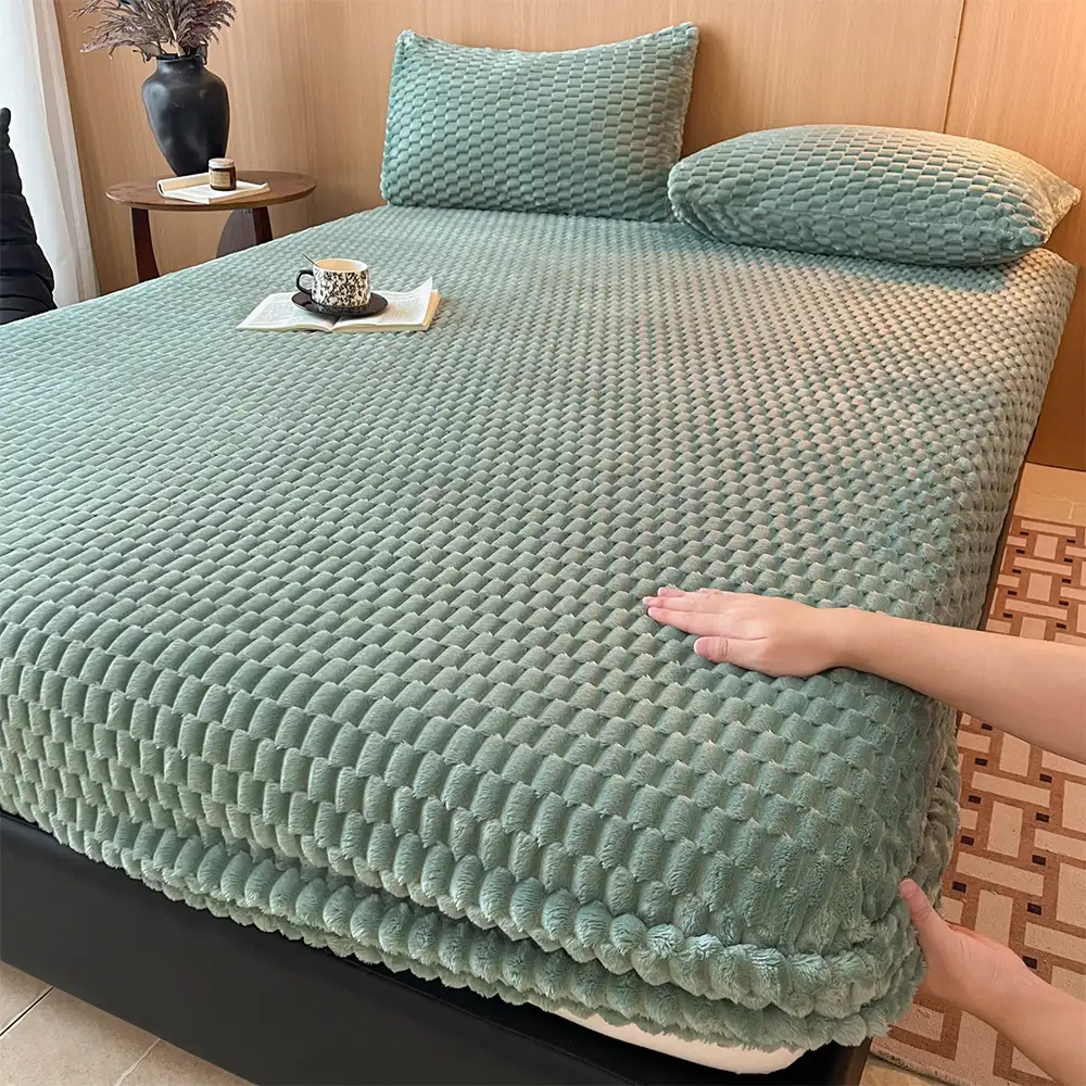 Soft Plush Skin-Friendly Mattress Protector Bedding Fitted Sheet Set