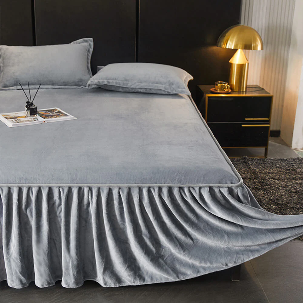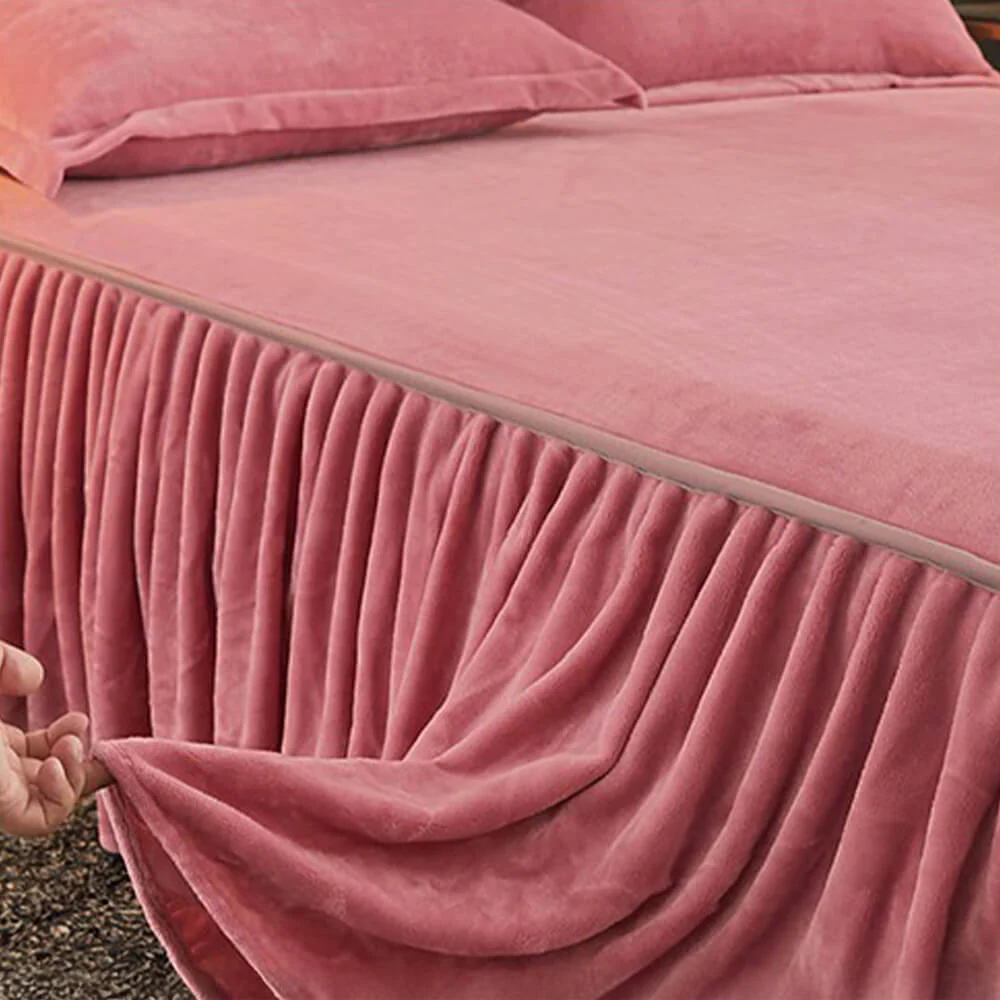 Solid Color Soft Warm Milk Velvet Mattress Cover Protector Bed Skirt